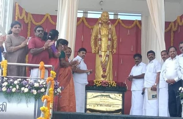 நாமக்கல்: நாமக்கல் அருகே சிவியாம்பாளையத்தில், தமிழறிஞர் சிலம்பொலி சு.செல்லப்பன் 12 அடி உயர வெண்கல திருஉருவச் சிலையை, சென்னையில் இருந்து காணொலி வாயிலாக முதல்வர் சனிக்கிழமை காலை திறந்து வைத்தார்.