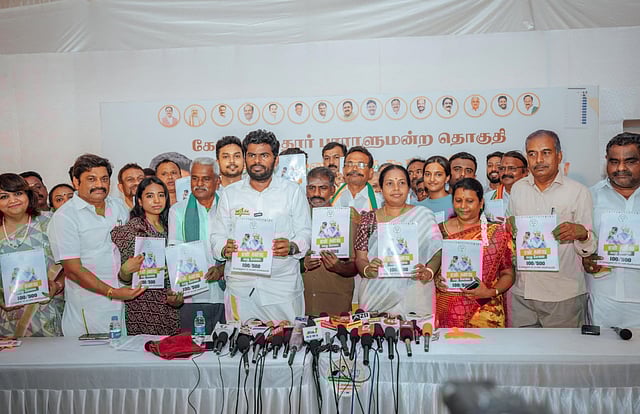 மூன்று கட்சி வேட்பாளா்களும், கொளுத்தும் வெயிலிலும் பம்பரமாகச் சுழன்று வாக்குச் சேகரிப்பில் ஈடுபட்டு வருகின்றனா். இந்த நிலையில் என் கனவு நமது கோவை என்ற தலைப்பில் கோவை மாவட்டத்திற்கான 100 வாக்குறுதிகள் அடங்கிய தேர்தல் அறிக்கையை பாஜக மாநிலத் தலைவரும் கோவை வேட்பாளருமான அண்ணாமலை இன்று வெளியிட்டார்.