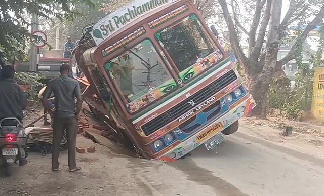 இந்நிலையில் கோவை, கணபதி மணியகாரம்பாளையம் பகுதியில் கடந்த சில நாள்களுக்கு முன்பு பாதாள சாக்கடை குழியில் லாரி ஒன்று சிக்கிக் கொண்டு போக்குவரத்து நெரிசல் ஏற்பட்டது. நீண்ட நேரத்திற்குப் பின்பு கிரேன் மூலம் லாரி அங்கு இருந்து மீட்கப்பட்டது.