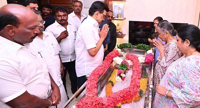 மறைந்த கவிஞர் ஈரோடு தமிழன்பன் உடலுக்கு முதல்வர் ஸ்டாலின் நேரில் அஞ்சலி செலுத்தினார்.