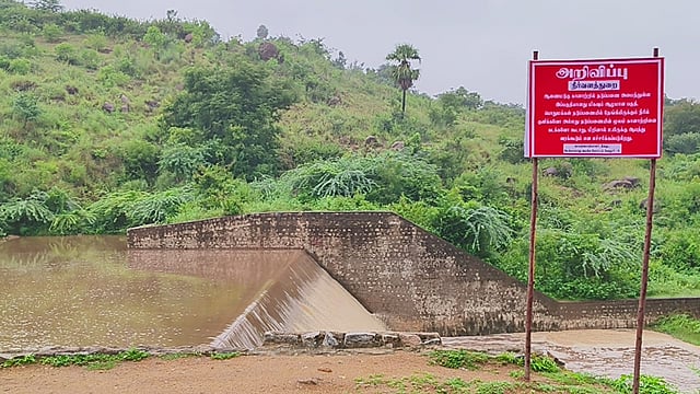நாயக்கனேரி, பனங்காட்டேரி உள்ளிட்ட மலை கிராம பகுதிகளில் அதிக அளவில் மழை பெய்ததால், ரெட்டி தோப்பு ஆனைமடுகு நீர்த்தேக்கத்தில் நீர் நிரம்பி மாங்காய் தோப்பு கே.எம். நகர் பகுதிகள் வழியாக பாலாற்றில் கலக்கிறது.