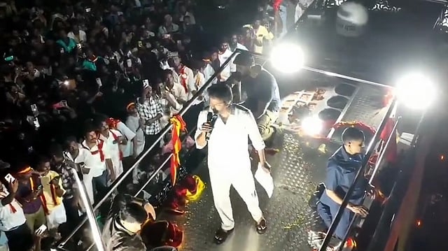 அரியலூர்: வாக்குத் திருட்டுக்கு எதிராக குரல் கொடுத்த விஜய் அரியலூரில் இன்றிரவு பேசும்போது, திமுக அரசை கடுமையாக விமர்சித்தார்.