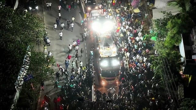 அரியலூர்: திருச்சியில் மக்களைச் சந்தித்து பரப்புரையில் ஈடுபட்ட பின், தமிழக வெற்றிக் கழகம் கட்சித் தலைவர் விஜய் அரியலூர் வந்தடைந்தார்.