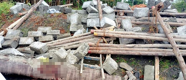 திருப்பூர் மாவட்டம், அவிநாசி வட்டம், கருவலூர் அருகே உப்பிலிபாளையம் பகுதியைச் சேர்ந்தவர் சண்முகம். இவருக்கு சொந்தமான இடத்தில் கோழிபண்னை அமைக்கும் பணி நடைபெற்று வருகிறது. இந்நிலையில், சனிக்கிழமை காலை வழக்கம் போல, கட்டடத் தொழிலாளர்கள் கட்டுமானப் பணியில் ஈடுபட்டிருந்தனர்.