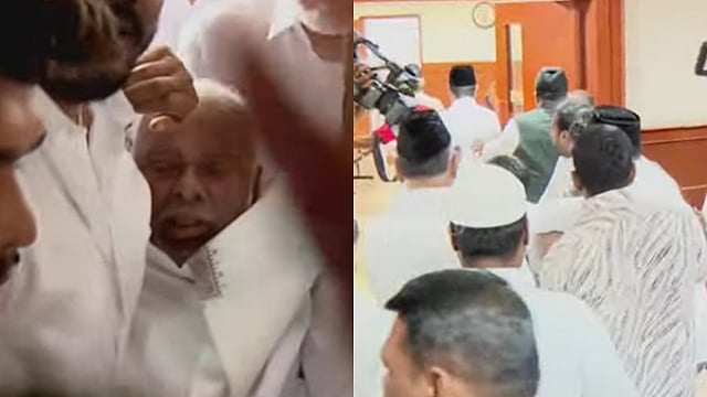 சட்டப்பேரவைத் தேர்தலையொட்டி திமுக உடனான பேச்சுவார்த்தைக்குப் பிறகு செய்தியாளர்கள் சந்திப்பின்போது இந்திய யூனியன் முஸ்லிம் லீக் கட்சியின் (ஐ.எம்.யு.எல்.) தேசியத் தலைவர் காதர் மொகிதீன் மயங்கி விழுந்தார்.