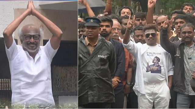 ரஜினியும் உடனே ரசிகர்களைப் பார்த்து கையசைத்து வாழ்த்துகளைத் தெரிவித்தார்.