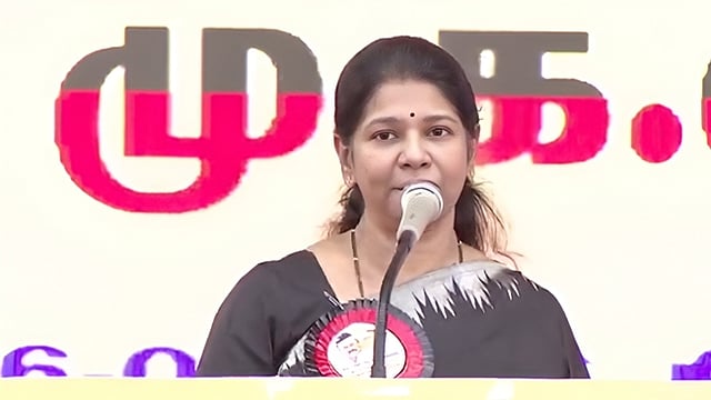 தஞ்சாவூர் அருகே செங்கிப்பட்டியில் வெல்லும் தமிழ்ப் பெண்கள் என்கிற திமுக டெல்டா மண்டல மகளிரணி மாநாடு இன்று (ஜன. 26) நடைபெற்றது. இதில், மகளிரணி செயலரும், திமுக துணைப் பொதுச் செயலருமான கனிமொழி எம்.பி. உரையாற்றினார்,