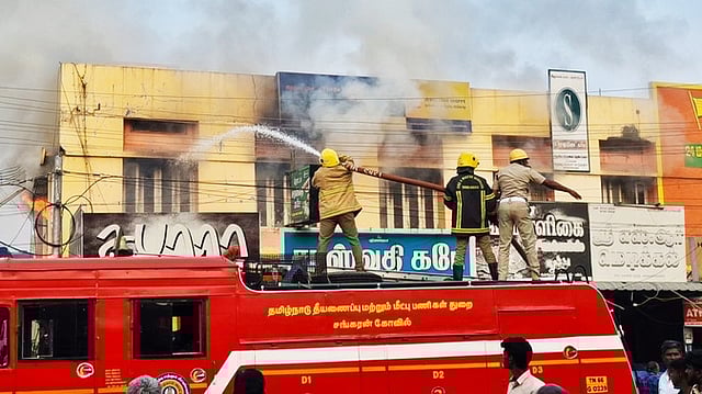 இருந்து தீயணைப்பு வாகனங்கள் வரவழைக்கப்பட்டு வீரா்கள் தண்ணீரை பீய்ச்சி தீயை அணைத்தனா். இந்த வழியாகச் செல்லும் பேருந்துகள், பள்ளி, கல்லூரிப் பேருந்துகள் அனைத்தும் மாற்றுப் பாதை வழியாகத் திருப்பிவிடப்பட்டன. இருப்பினும், பிரதான சாலையில் வந்த வாகனங்களால் கடும் போக்குவரத்து நெருக்கடி ஏற்பட்டது.