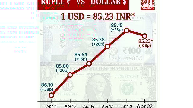 நேற்றைய வர்த்தத்தில் அந்நிய செலாவணி சந்தையில் அமெரிக்க டாலருக்கு நிகரான இந்திய ரூபாயின் மதிப்பு 23 காசுகள் உயர்ந்து ரூ.85.15-ஆக இருந்தது.