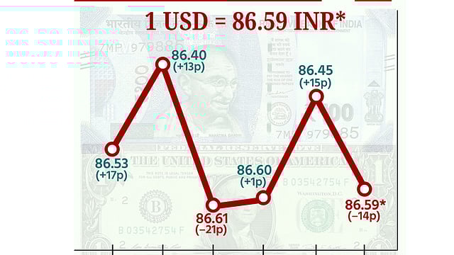 வங்கிகளுக்கு இடையேயான அந்நிய செலாவணியில் சந்தையில், டாலருக்கு நிகரான இந்திய ரூபாயின் மதிப்பு ரூ.86.28 ஆக தொடங்கியது. வர்த்தக நேர முடிவில் அதிகபட்சமாக ரூ.86.28 ஆகவும், குறைந்தபட்சமாக ரூ.86.59 புள்ளிகள் வரை சென்றது. இது இறுதியாக ரூ.86.59 ஆக முடிவடைந்தது.