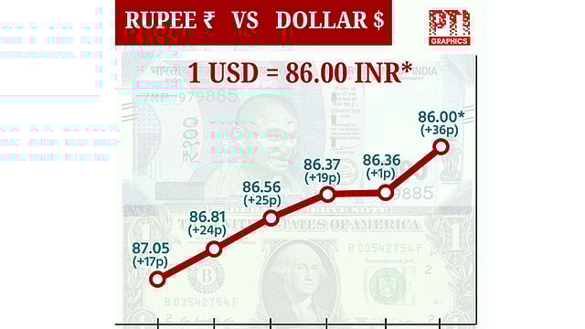 மும்பை: உள்நாட்டு பங்குச் சந்தைகளின் உயர்வு மற்றும் அந்நிய மூலதன வரத்து காரணமாக இன்று (வெள்ளிக்கிழமை) அமெரிக்க டாலருக்கு நிகரான இந்திய ரூபாய் 36 காசுகள் உயர்ந்து ரூ.86-ஆக நிலைபெற்றது.