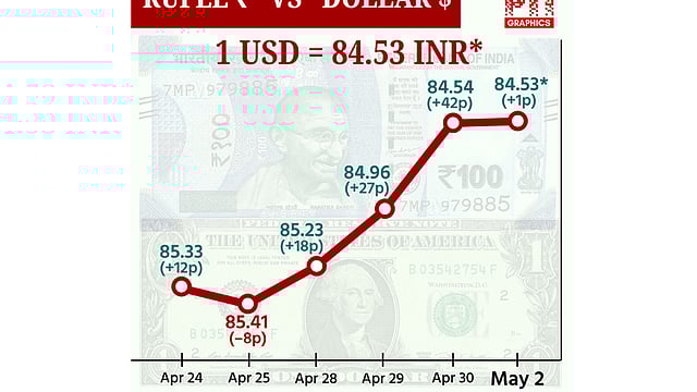 நேற்று முன்தினம் (புதன்கிழமை) அந்நிய செலாவணி சந்தையில் அமெரிக்க டாலருக்கு நிகரான இந்திய ரூபாயின் மதிப்பு 42 காசுகள் உயர்ந்து ரூ.84.54-ஆக இருந்தது.