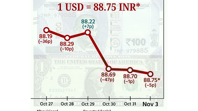 முடிவில் டாலருக்கு நிகரான இந்திய ரூபாய் மதிப்பு அதன் முந்தைய முடிவிலிருந்து 5 காசுகள் சரிந்து ரூ.88.75 ஆக முடிவடைந்தது.