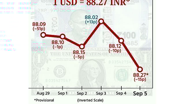 நேற்று (வியாழக்கிழமை) அமெரிக்க டாலருக்கு நிகரான இந்திய ரூபாய் 10 காசுகள் சரிந்து ரூ.88.12 ஆக நிறைவடைந்தது. இதற்கு முன்பு செப்டம்பர் 2 ஆம் தேதி டாலருக்கு நிகரான இந்திய ரூபாயின் மதிப்பு 88.15 ஆக இருந்தது. இதுவே இதுவரை இல்லாத அளவுக்குக் குறைந்த அளவாகும்.