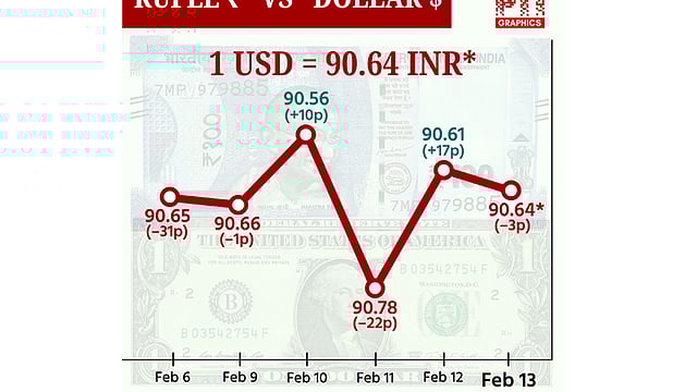 வங்கிகளுக்கு இடையேயான அந்நிய செலாவணி சந்தையில், டாலருக்கு நிகரான இந்திய ரூபாய் மதிப்பு ரூ.90.69 ஆக தொடங்கி, பிறகு இன்ட்ராடே வர்த்தகத்தில், அதிகபட்சமாக ரூ.90.60 சென்ற பிறகு, குறைந்தபட்சமான ரூ.90.79 ஐ தொட்டது. வர்த்தக முடிவில், அதன் முந்தைய நாள் முடிவை விட 3 காசுகள் குறைந்து ரூ.90.64 ஆக முடிவடைந்தது.