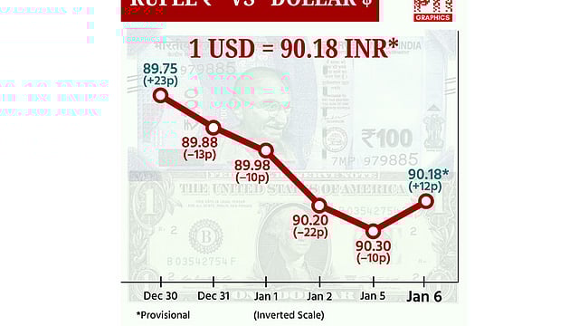மும்பை: அமெரிக்க டாலர் குறியீட்டில் ஏற்பட்ட சரிவைத் தொடர்ந்து, ரூபாய் நான்கு நாள் தொடர் சரிவுக்கு முற்றுப்புள்ளி வைத்து, இன்றைய வர்த்தகத்தில் டாலருக்கு நிகரான 12 காசுகள் உயர்ந்து ரூ.90.18ஆக நிலைபெற்றது.