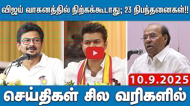 விஜய் பிரசாரம்: வாகனத்தில் நிற்கக்கூடாது; கையசைக்கக் கூடாது! 23 நிபந்தனைகள்!! செய்திகள்: சில வரிகளில் | 10.9.25 | TVKVIJAY