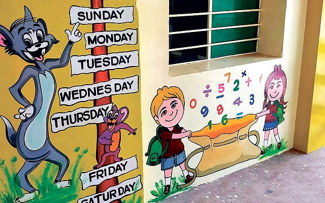 இதுமட்டுமின்றி, பொதுமக்கள் தன்னார்வர்களின் ஒத்துழைப்போடு, பள்ளி வளாகம் முழுவதும் தேசிய தலைவர்களின் படங்கள் மட்டுமின்றி, தமிழ், ஆங்கிலம், கணிதம், அறிவியல், சமூக அறிவியல் ஆகிய அனைத்து பாடங்களையும் வண்ண ஓவியங்களாக தீட்டியுள்ளார்.