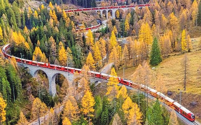 இயற்கை படர்ந்த சுவிட்சர்லாந்து அல்ப்ஸ் மலையில் 25 ரயில்கள் இணைக்கப்பட்ட 2 கி.மீ. தூர பெட்டிகள் மலைகளின் குகைகளிலும், செங்குத்தான பாதைகளிலும் நுழைந்து நெளிந்து நீண்டுக் கொண்டே சென்ற காட்சி அனைவரையும் கவர்ந்தது.