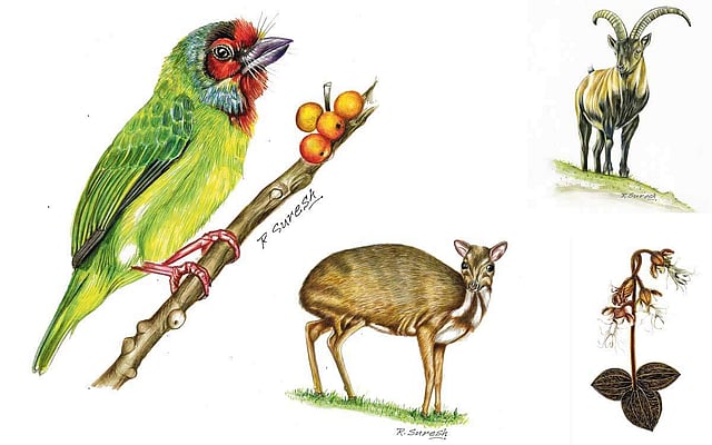 உலகப் புகழ் பெற்ற மேற்குத் தொடர்ச்சி மலையில் அழியும் நிலையில் உள்ள தாவரங்கள், விலங்குகள், பறவைகள் உள்ளிட்டவற்றை ஓவியமாக வரைந்து, அவற்றை அடுத்தடுத்த தலைமுறைகளுக்கு உயிர்ப்புடன் எடுத்துச் செல்ல உதவி வருகிறார் கோவையைச் சேர்ந்த ஓவியர் ராகவன் சுரேஷ்.