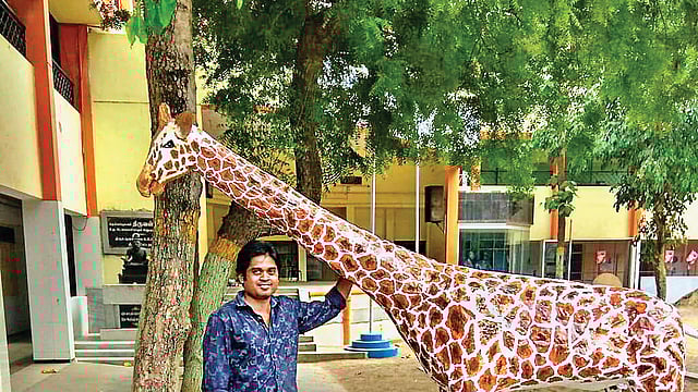 'விலங்குகள், பறவைகளின் உருவ அளவை அச்சு செய்து கான்கிரீட் கலவையை அதில் ஊற்றி இறுகச் செய்து உருவாக்கப்பட்டதல்ல; அச்சில் களிமண்ணை அடைத்து சுட்டு எடுக்கப்பட்டதும் அல்ல; முழுக்க, முழுக்க கைகளால் செய்யப்பட்டது. அதுவும் பழைய காகிதங்களைப் பயன்படுத்தி செய்யப்பட்டது.