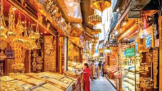 இங்கு தங்க நகைகள், கட்டிகள், ஆபரணங்கள் விற்கும் நூற்றுக்கணக்கான கடைகளில் 22 காரட், 24 காரட்டுகளில் உயர் தூய்மையும், நம்பகத் தன்மையும் கொண்ட தங்கத்தை வாங்கிச் செல்கின்றனர். எண்ணெய்க்கு முன்பே தங்கம், முத்து வர்த்தகத்தில் பிரபலமான துபை ஏராளமான செல்வத்தை ஈட்டியது.