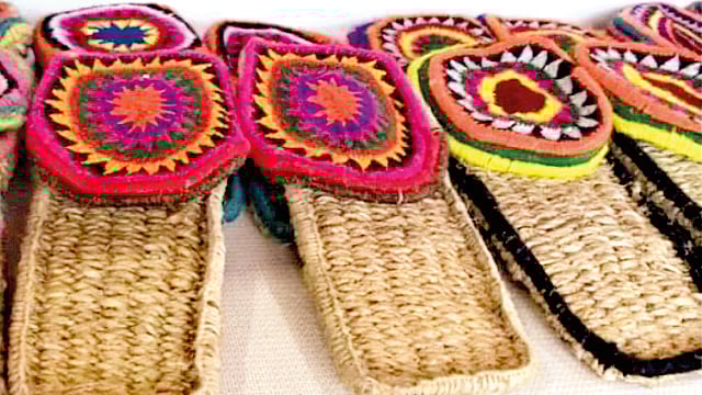 இதனை கையால் செய்யப்பட்ட 'பாரம்பரிய புல் காலணி' என அழைக்கின்றனர்.
