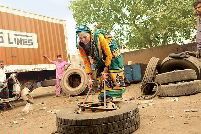 இவரை முதலில் தீதி (சகோதரி), அடுத்து பாபி (மைத்துனி), இப்போதோ தாடி (பாட்டி) என்று அழைக்கிறார்கள். ஆமாம், இன்று சாந்திதேவிக்கு 65 வயது. தனது உடற்தகுதிக்கு ஏற்ற டயர்களைத் தூக்குகிறார்.