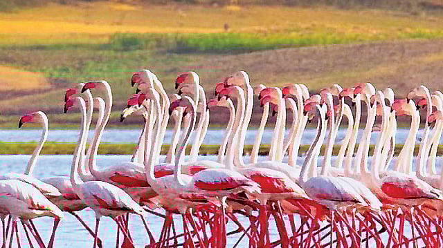 இந்தியாவில் குளிர்காலம் தொடங்கியுள்ள நிலையில், ஃபிளமிங்கோவின் தோற்றம் ஈரமான நிலங்களை துடிப்பான ரோஜா நிறங்களால் சூழப்பட்ட இயற்கை பிரமிப்புக் களமாக மாற்றுகிறது. இப் பறவைகளின் வருடாந்தர இடப்பெயர்வு ஊட்டச்சத்து நிறைந்த சதுப்பு நிலங்கள், உப்பு ஏரிகளில் இறங்க வைக்கிறது.