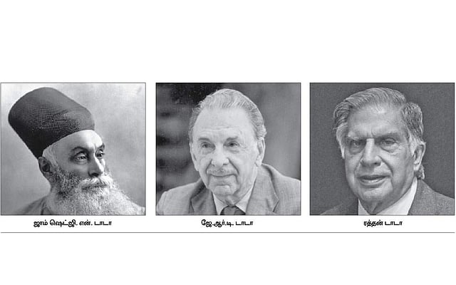 ஜாம்ஷெட்ஜி, தோரப்ஜிக்கு அடுத்து டாடா நிறுவனத்தை 1938-முதல் 91வரை தலைமைதாங்கி நடத்தியவர் ஜேஆர்டி டாடா. இந்தியாவின் முதல் பைலட்டாக உரிமம் பெற்ற அவர் "டாடா ஏர்லைன்ஸ்' என்ற விமான சேவை நிறுவனத்தை தொடங்கி பின்னர் அதை "ஏர் இண்டியா'வாக மாற்றினார். 1932-இல் கராச்சியில் இருந்து பம்பாய்க்கு கடிதங்களைக் கொண்டு வரும் சரக்கு விமானத்தை இயக்கினார். 1953-இல் ஏர் இண்டியா தேசிய உடமையாக்கப்பட்டது. இருப்பினும் 1977வரை அதன் தலைவராக இருந்து வழி நடத்தினார். ஜேஆர்டி காலத்தில் 14 நிறுவனங்களாக இருந்த டாடா சன்ஸ் என்ற தாய்நிறுவனத்தின் கிளைகளாக 95 தொழில் நிறுவனங்கள் ஜேர்டியின் தலைமையில் டாடா குழுமத்தில் தொடங்கப்பட்டன.