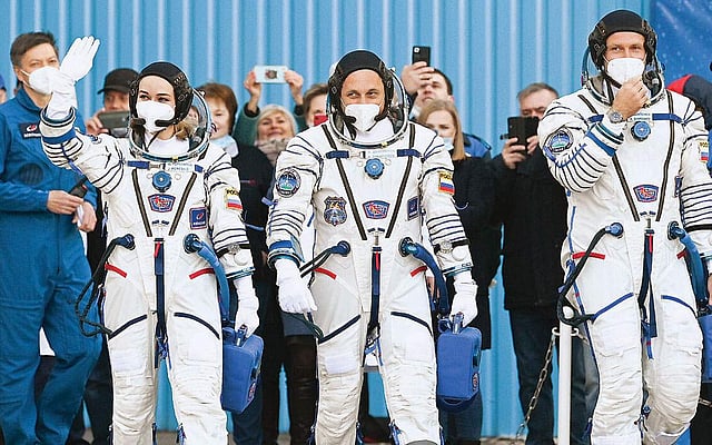 இதற்காக ரஷியாவின் சோயுஷ் விண்கலத்தில் நடிகை யூலியா பெரசில்ட், இயக்குநர் கிளிம் சிபென்கோ, விண்வெளி வீரர் ஆன்டன் ஷ்காப்லெரோவ் ஆகியோருடன் கஜகஸ்தானில் உள்ள பைகானூர் ஏவுதளத்திலிருந்து புறப்பட்டுச் சென்றது.