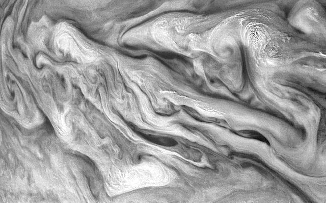 அதன் பெரிய சிவப்பு புள்ளிக்காக வியாழன் கிரகம் அறியப்பட்டாலும், நாசா பகிர்ந்துள்ள புகைப்படம் வியாழனில் ஏற்பட்ட புயலைக் காண்பிக்கிறது.வியாழன் கிரகத்தைக் கடந்து சென்ற நாசாவின் ஜூனோ விண்கலம்தான் இந்தப் புகைப்படத்தை எடுத்துள்ளது. உயர்தரமான தேநீர் கடையின் சுவரில் இடம்பெற்றுள்ள வண்ண ஓவியம் போல காணப்படுகிறது இந்தப் புகைப்படம்.