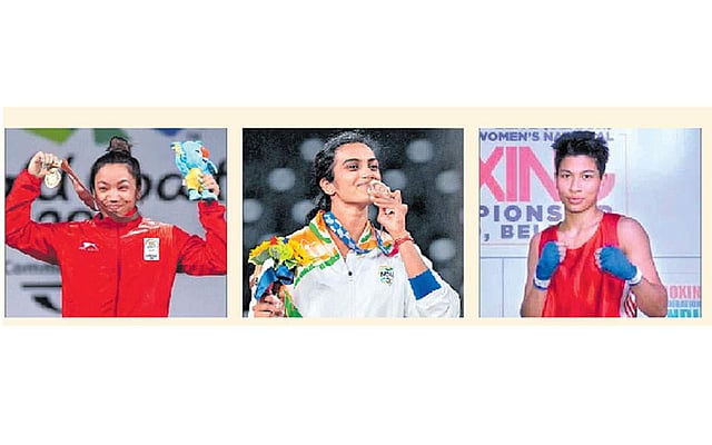 பளு தூங்குவதில் வெள்ளிப் பதக்கம் பெற்ற மீரா பாய் சானு, இறகுப் பந்தாட்டத்தில் வெண்கலப் பதக்கத்தைக் கைப்பற்றிய பி.வி. சிந்து, குத்துச் சண்டையில் வெண்கலப் பதக்கத்துடன் திரும்பிய லவ்லினா போர்கோஹேன் இந்தியாவுக்குப் பெருமை சேர்த்த மகளிர்கள்.