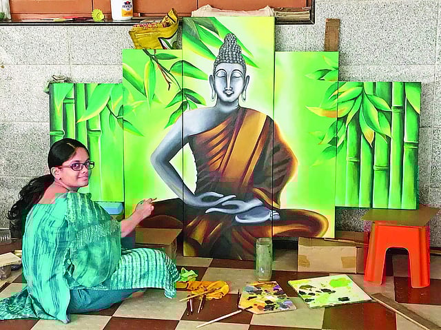 பொது முடக்கம் தந்த வாய்ப்பு: நாமக்கல், சந்தைப்பேட்டை புதூரைச் சேர்ந்தவர் வ.த.நந்தனா (25). பி.டெக். முடித்த இவர் பெங்களூரில் மென்பொருள் பொறியாளராகப் பணியாற்றி வந்தார். கரோனா பொது முடக்கத்தால் பணியில் இருந்து தன்னை விடுவித்துக் கொண்டு வீடு திரும்பிய அவர், பொழுதுபோக்காகத் தொடங்கிய ஓவியப் பயிற்சி