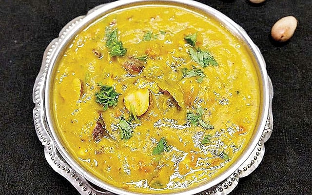 பலாக் கொட்டையை வேக வைத்து தோல் நீக்கி இரண்டாக நறுக்கிக் கொள்ள வேண்டும். தேங்காயைத் துருவி பால் எடுக்க வேண்டும். ஒரு மேசைக்கரண்டி அரிசியுடன் தேங்காய்த் துருவல், மிளகாய் முதலியவற்றை வறுத்து அரைக்க வேண்டும். வெங்காயத்தை நறுக்கி தனியாக அரைக்க வேண்டும். வாணலியில் எண்ணெய்விட்டு அடுப்பில் வைத்து அரைத்த வெங்காயவிழுதைப் பொன்னிறமாக வதக்க வேண்டும். இதனுடன் தனியா தூள், மஞ்சள் தூள், மிளகாய்த்தூள், பச்சை மிளகாய் முதலியவற்றையும் சேர்த்து வதக்க வேண்டும். பின்னர், நறுக்கி வைத்திருக்கும் பலாக் கொட்டை, உப்பு இரண்டையும் போட்டு ஐந்து நிமிடம் வதக்கிய பிறகு தேங்காய்ப் பாலைச் சேர்த்து , அரைத்த விழுதையும் சேர்த்து கொஞ்சம் இறுகிய பிறகு கறிவேப்பிலை, கொத்துமல்லி தூவி கீழே இறக்கவும்.