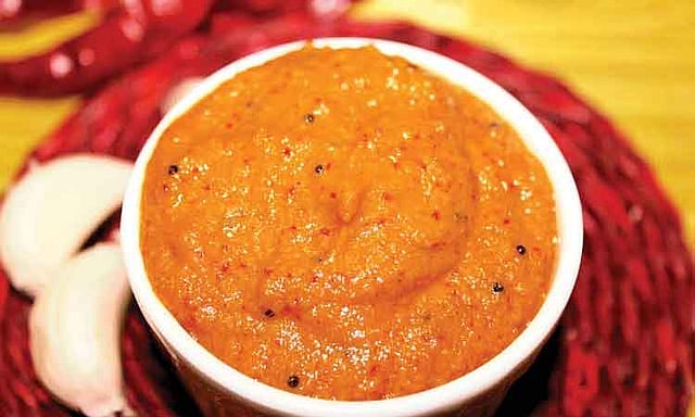 அவை ஆறியதும் அவற்றுடன்,கறிவேப்பிலை, புளி, காய்ந்த மிளகாய் இவற்றையெல்லாம் நன்கு அரைக்கவும். வாணலியை அடுப்பில் வைத்து சூடானதும், நல்லெண்ணெய்யை ஊற்றி கடுகு, கருவேப்பிலையைத் தாளித்து, அரைத்து விழுதை சேர்த்து இறக்கவும். ஆரோக்கியமான பூண்டு சட்னி தயார்.