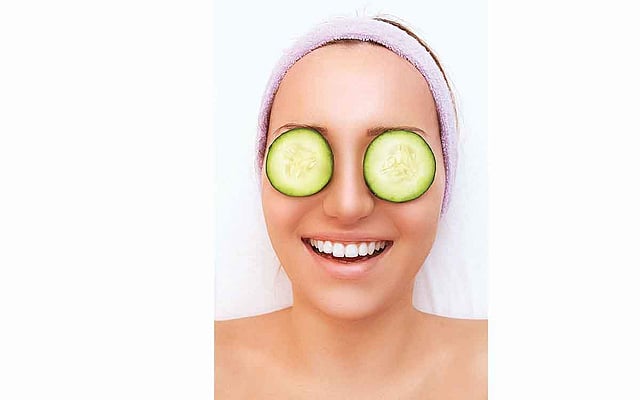 மாதுளம் பழச்சாறு, பன்னீர் இரண்டையும் சரிவிகிதம் சேர்த்து கண்களுக்குக் கீழ் தடவி, கண்ணுக்கு மேலே வெள்ளரி துண்டு வைத்துவிட்டு தூங்கினால் போதும். கண்கள் புதுப்பொலிவுறும்.