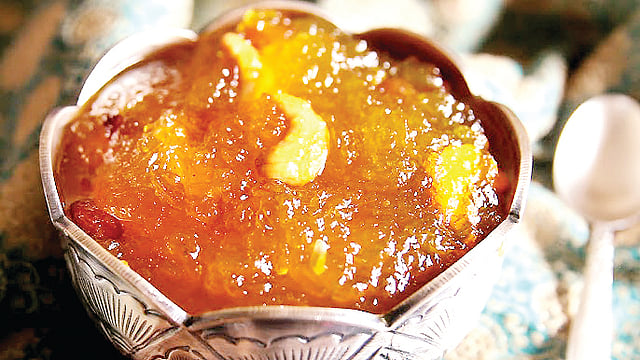 கல்யாணப் பூசணிக்காயின் மேல் தோலை சீவி உள்ளேயுள்ள வெள்ளைச் சதைப் பந்தை எடுக்க வேண்டும். வாணலியை அடுப்பில் வைத்து தேவையான தண்ணீரை விட்டு, சர்க்கரையைப் போட்டு பாகாகக் காய்ச்சி பூசணித் துருவலைப் பிழிந்து நீரை எடுத்துவிட்டு, அதில் போட்டு நன்றாகக் கிளற வேண்டும். காய் வெந்து மொந்தையாகும்.
