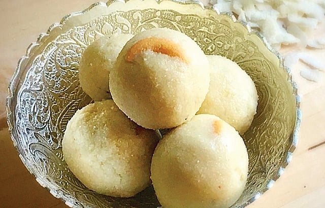 அரைத்த மாவுக்குச் சமமாக மாவுச் சர்க்கரையைப் போட்டு கூடவே வறுத்த முந்திரிப் பருப்பு, பொடி செய்த ஏலக்காய் போட்டு கலந்த நெய்யை உருக்கிக் கலந்து, சூட்டோடு சூடாக லட்டு பிடிக்க வேண்டும்.