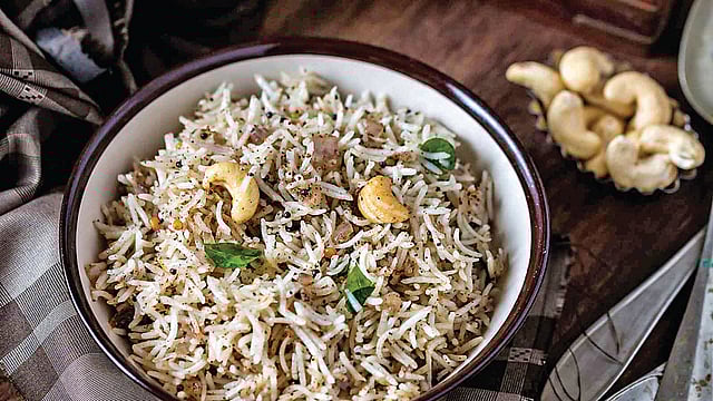 பூண்டு, கறிவேப்பிலை, சீரகம், மிளகு ஆகியவற்றை வெறும் வாணலியில் வறுத்து தூளாக்கிக் கொள்ளவும். பின்னர், வாணலியில் சிறிது நெய்விட்டு காய்ந்ததும் கடுகு, உளுந்தம் பருப்பு தாளித்து அத்துடன் வடித்த சாதம், உப்பு, பொடித்து வைத்துள்ள தூள் ஆகியவற்றை சேர்த்து நன்றாகக் கிளறி இறக்கவும். சுவையான மிளகு சாதம் தயார்.