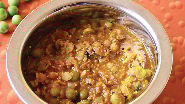 சுண்டைக்காயைக் கழுவி காம்பை எடுத்துப் பொடியாக நறுக்க வேண்டும். துவரம் பருப்பை முக்கால் பதமாக வேக வைத்து எடுக்க வேண்டும். வெங்காயம், தக்காளி, பச்சை மிளகாயை நறுக்க வேண்டும். வாணலியில் எண்ணெய் விட்டு கடுகு, உளுந்தம் பருப்பைப் போட்டு பொரிந்தவுடன் பச்சை மிளகாய், வெங்காயம், வதக்க வேண்டும்.