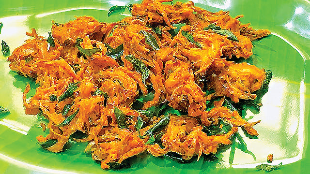 டால்டாவைச் சுடவைத்து மாவில் ஊற்றி பக்கோடா மாவு பதத்துக்குப் பிசைந்து கொள்ளவும். அடுப்பில் வாணலியை வைத்து எண்ணெய் ஊற்றிக் காய்ந்ததும் மாவை பக்கோடாக்களாகக் கிள்ளிப்போட்டுச் சிவக்க வெந்ததும் எடுக்கவும்.