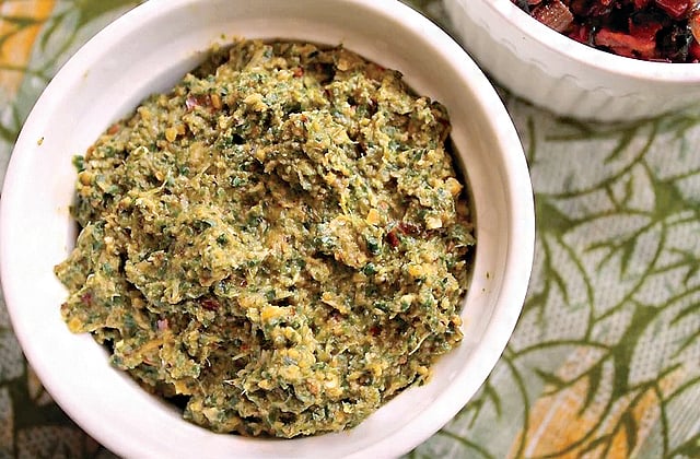 வதக்கிய இலை, வறுத்த பொருள்கள், தேங்காய்த்துருவல், கறிவேப்பிலை, உப்பு சேர்த்து அரைத்து எடுத்தால் துவையல் ரெடி!