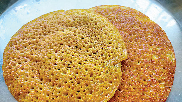 அரிசி, அவல், உளுந்தம் பருப்பு மூன்றையும் தனித்தனியாக ஊற வைத்து, தனித்தனியாக ஊற வைத்து, தனித்தனியாக அரைக்க வேண்டும். சர்க்கரை, தேங்காய்த் துருவல் சேர்த்துக் கலக்கி, நான்ஸ்டிக் தவாவில் சிறு தோசைகளாக மாவை ஊற்றி, லேசாக நெய்யை ஊற்றி வெந்தெடுத்தால் சுவையாக இருக்கும்.