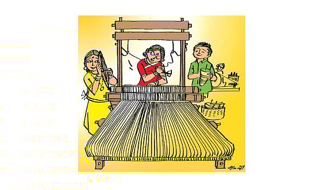 ஓட்டும் தறியில் நெய்கிறார்!