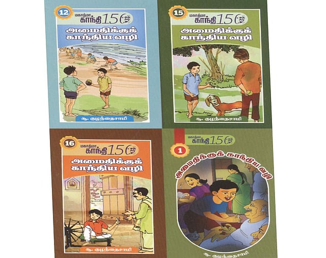 அமைதிக்குக் காந்திய வழி - (செல்லக் குழந்தைகளுக்கான குட்டிக் கதைகள்); முனைவர் ஆ.குழந்தைசாமி; ரூ.350; வெளியீடு: காந்தி அமைதி நிறுவனம், 332, அம்புஜம்மாள் தெரு, ஆழ்வார்பேட்டை, சென்னை-18;
