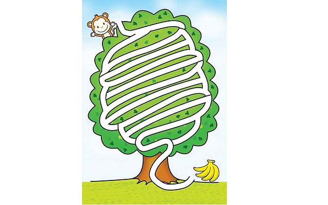 குரங்குக் குட்டிக்கு வாழைப்பழத்தை அடைய சரியான வழியைக் காட்டுங்கள்.