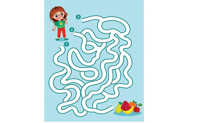 சிறுமிக்குப் பிடித்த பழங்களை அடைய 3 வழிகள் காண்பிக்கப்பட்டுள்ளன.