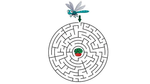 தும்பியாருக்கு நடுவில் உள்ள செடியை அடைய வழி காட்டுங்கள்.