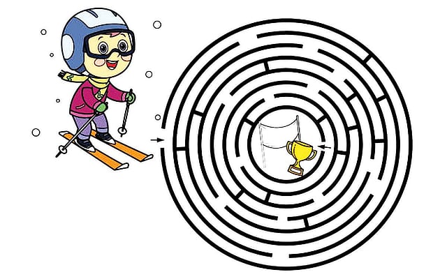 பனிச்சறுக்கு வீரர், வெற்றிக் கோப்பையைத் தொலைத்து விட்டார்; அதை அவர் மீண்டும் அடைய வழி காட்டுங்கள்.